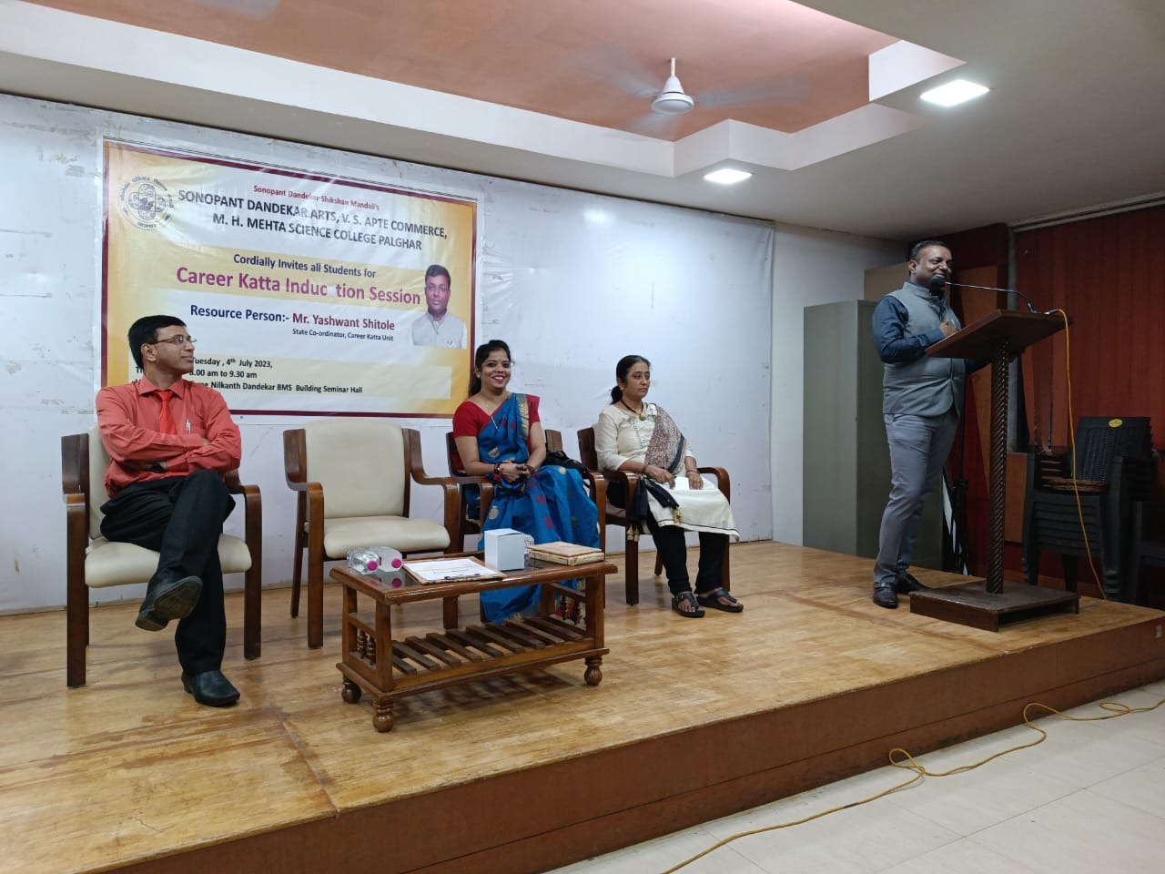 Career Katta Induction Programme was held at Sonopant Dandekar College Palghar on 4th July 2023. Shri. Yashvant Shitole, Chair person MITSC - Career Katta, Maharashtra was the Recourse Person for the Programme